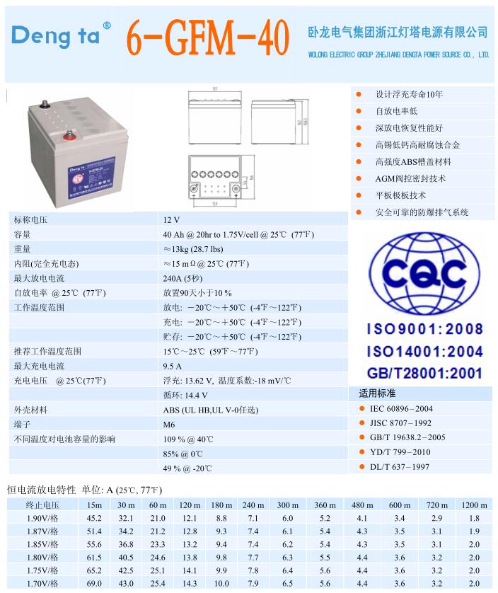 燈塔蓄電池6-GFM-40U(12V40AH)